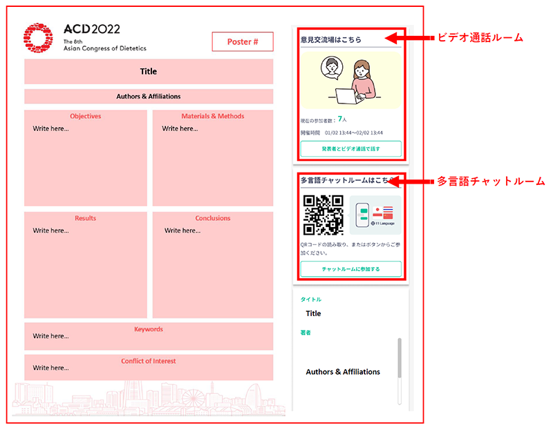 会議参加者には、オンラインプラットフォーム上で、上述の発表用ポスターを閲覧していただきます。