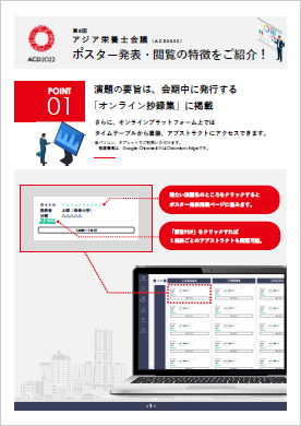 また、2022年7月中旬に発表用ポスター(英語でパワーポイント1枚想定。音声なし。)をオンライン投稿していただきます。発表はオンライン発表とし、英語による口頭での発表はございません。
